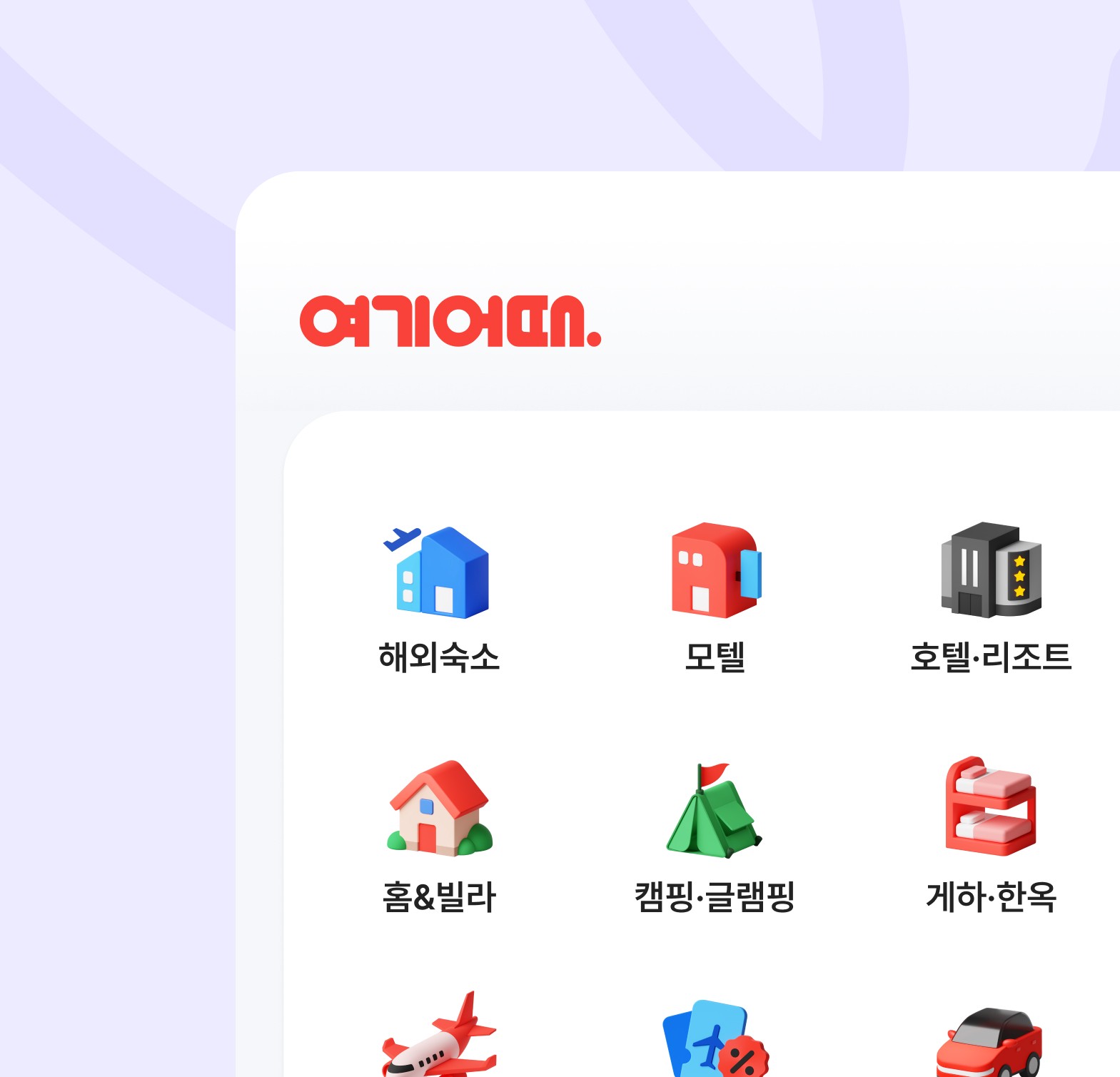 여기어때만의 감성과 메시지를 시각적으로 표현하는 그래픽 시스템입니다.