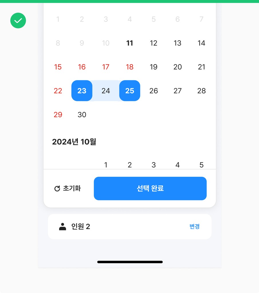 e.g. 달력에서 날짜 선택 → “선택 완료”