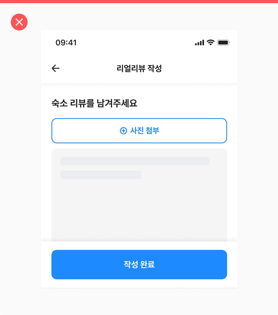 “작성 완료”는 리뷰 등록 뒤에 노출되는 상태를 표현하는 문구에 가깝습니다.