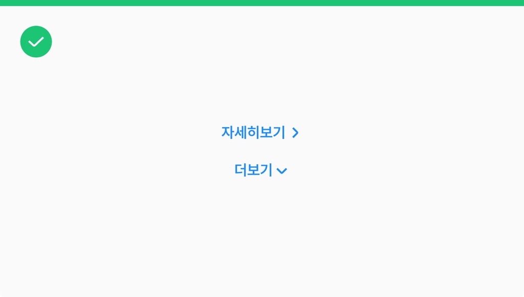 • Suffix icon은 Arrow 계열만 가능합니다. • 버튼의 행동이 이동, 확장, 상세 보기 등을 의미할 때, 뒤에 Arrow icon을 배치하여 사용자가 동작을 직관적으로 예측할 수 있도록 합니다. • 버튼 텍스트 작성 규칙(‘~기’체 사용 여부 등)은 Button content guideline을 참고하세요.