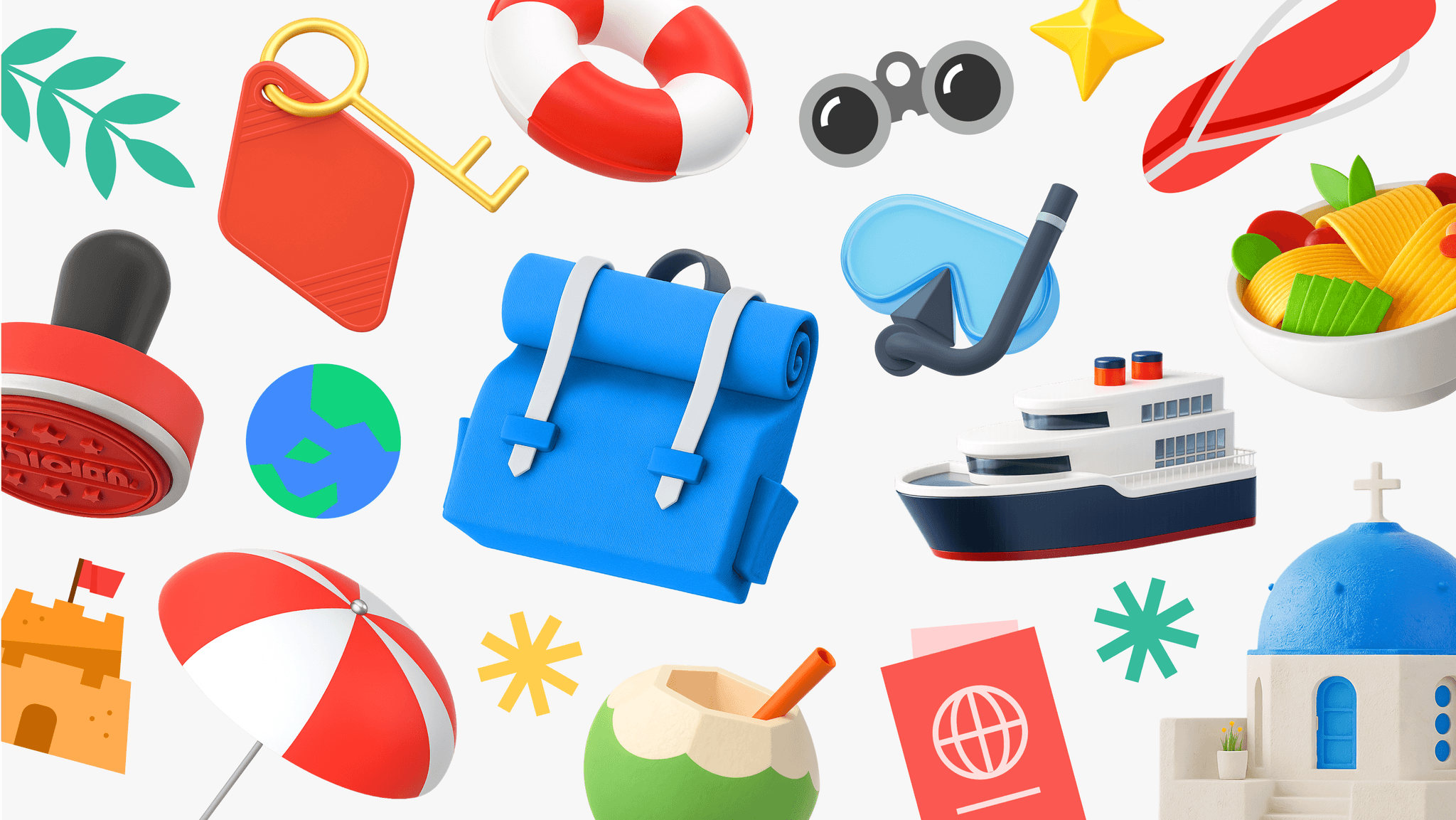 여행의 핵심 주제(이동, 탐험, 체험 등)를 담아, 여행 전반의 순간을 시각적으로 표현한 그래픽입니다.