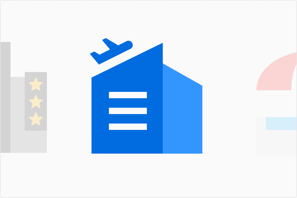 숙소, 편의시설, 문화공간 등 여행과 관련된 다양한 건축물을 시각화한 그래픽입니다.