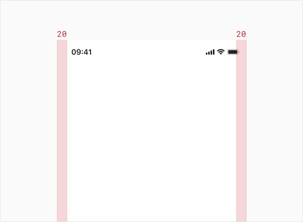 기본 화면의 공통적인 좌우 여백은 20px 입니다.