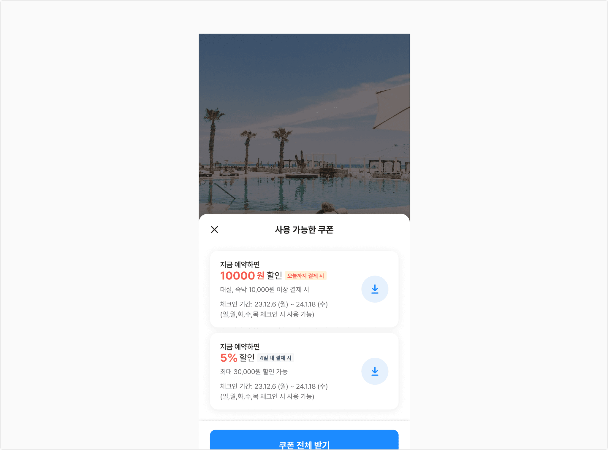 Card 형태로 그룹핑된 UI가 반복적으로 가로 또는 세로로 나열될 경우 사용할 수 있습니다.